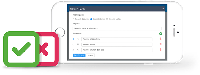You can create exams with simple and / or multiple selection questions, as well as open-ended questions.